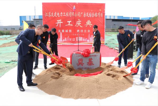 2021年4月30日上午华亿体育厂房及综合楼项目开工奠基仪式隆重举行。淮安市骏宇电力安装有限公司董事长沈达军,江苏淮工深蓝信息技术有限公司董事长唐勇先生,江苏荣昌电气有限公司董事长曹登峰先生,淮安市亦辰电力安装有限公司董事长邵龙飞先生,淮安永源建设工程有限公司董事长郑猛先生,南京牛福爷餐饮管理有限公司董事长张正福先生,南京柏泉装饰工程有限公司董事长李银平先生,南京建宇物业有限责任公司经理朱江、胡伟,副经理严亚明,以及本项目的各参建单位江苏棕淇建设工程有限公司,南京建凯建设项目管理有限公司等领导和嘉宾出席了奠基仪式,共同见证江苏友建这一历史性时刻。
